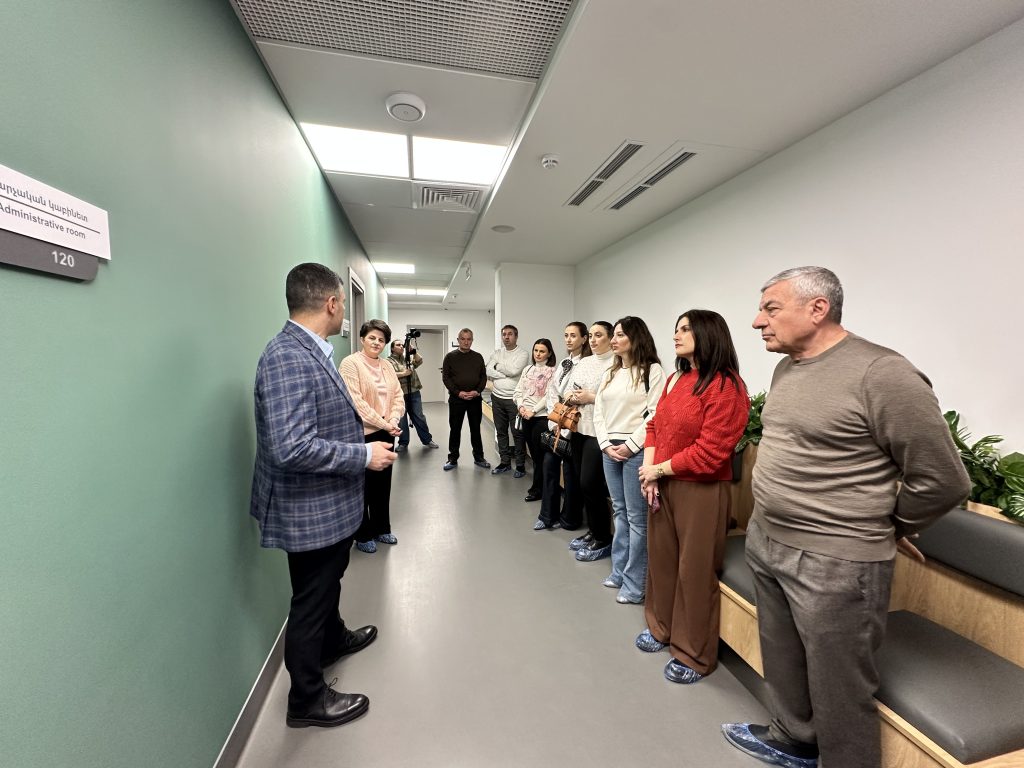 On February 13, the German Business Association, together with its members, visited the “Vitromed” Medical Center. Mr. Hakob Melikyan, Director of the medical center, organized a tour for the participants and presented the history of the center, the services provided, and highlighted the cooperation with the University Clinic of Lübeck in Germany. During the tour, participants became familiar with the center’s facilities, equipment, and operating rooms. After the tour, the event continued with a reception, allowing participants to network and continue discussions in an informal setting.